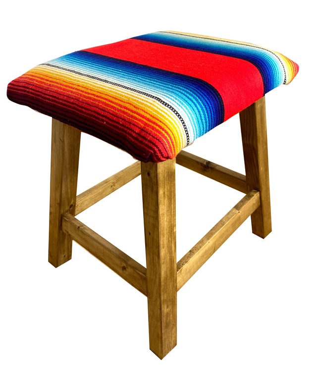 ★★商品について★★ サラペは、メキシコの伝統的な色鮮やかな縞模様が特徴の毛織物、または肩掛けのポンチョや毛布です。丈夫で厚手の生地が主流で、ビーチカルチャーでも大判のラグをソファーカバーにしたり車のラゲッジスペースに敷いたりと西海岸インテリアでも外せないモチーフです。 サラペの色鮮やかなボーダーを座面に仕立て生まれたumikaguの『サラぺ スツール』です。 サラぺ(メキシコの伝統的な織物)を使用した座面が特徴のスツールです。カラフルなボーダー柄が目を引き、リビングやダイニングルームに彩りを加えてくれます。ご家族とのくつろぎタイム、ご友人とのティータイムなど幅広いシーンでご活用いただけるアイテムです。 コンパクトで場所を取らないサイズ感ですのでいろいろなシーンで活躍出来るスツールです。 ◆ 食卓でいつもより人数が増えた時に ◆ キッチンでちょっと腰を下ろす時に ◆ 玄関で靴を履く時に ◆ ガレージで作業の合間の休憩の時に 重量も3.2kgと軽量ですので移動も簡単です! 特徴的な座面デザインなので置くだけでお部屋のアクセントになるおすすめのスツールです。 ★★サイズ★★ 横幅43 奥行き36 高さ46(cm) 座った時の高さは約43cm (±1cmまでのの誤差はご了承下さい) 座面は大人でもゆったりと座れるサイズとなっております。 ★★品質について★★ 座面生地 70%ACRYLIC 30%POLYESTER クッション部分 ウレタンフォーム 4cm厚 脚部分 ◆ 天然木を使用 ◆ ほぞ組(一方の木材の端に凸部(ほぞ)を作り、もう一方の木材に開けた凹部(ほぞ穴)に差し込んで接合する、伝統的な木組みの技法) ◆ 床キズを防ぐために脚部分にフェルトを貼らせていただいております。 ★★お手入れ方法★★ 1ヶ月に1回ほど座面に防水スプレーをして頂けると汚れが付着しづらくなります。 〜umikagu / ウミカグ 海を感じるインテリア工房〜 心を込めて1点1点制作をさせていただいております。 わからない事などございましたら気軽にご連絡をいただければお答えさせて頂きます。 オリジナルのウッドサインボードを1枚プレゼント!! 絵柄や色はランダムで発送させて頂きます。 ★★商品の特性についてご了承をお願い致します★★ ◆座面生地について 織キズ、ほつれ、ネップ等がある場合がございますがラグ生地の特性上とご理解ください。 ◆ 脚部分について 天然木を使用しております。その為、木の表情や風合い、フシの有無など個体差がございます。 ◆ モニタやPC環境等により実物と多少色合いが異なって見える場合もございます。