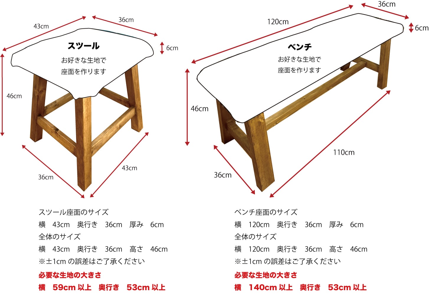 お好きな生地でオリジナルのスツールやベンチを制作いたします。