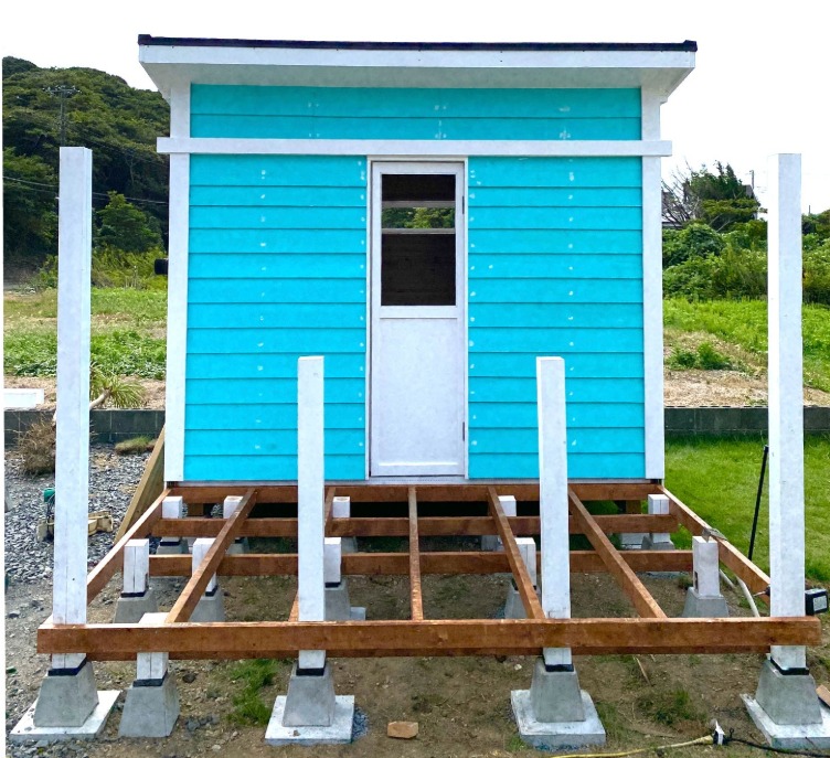 サウナ小屋の外観がほぼ完成してきたので、次は外気浴スペースとして使えるウッドデッキを制作しました。サウナといえば「サウナ → 水風呂 → 外気浴」の流れが醍醐味なので、小屋の前にゆっくり休めるスペースを作ることにしました。