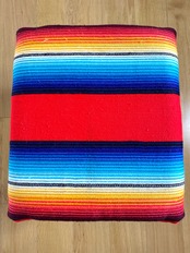 サラペは、メキシコの伝統的な色鮮やかな縞模様が特徴の毛織物、または肩掛けのポンチョや毛布です。丈夫で厚手の生地が主流で、ビーチカルチャーでも大判のラグをソファーカバーにしたり車のラゲッジスペースに敷いたりと西海岸インテリアでも外せないモチーフです。