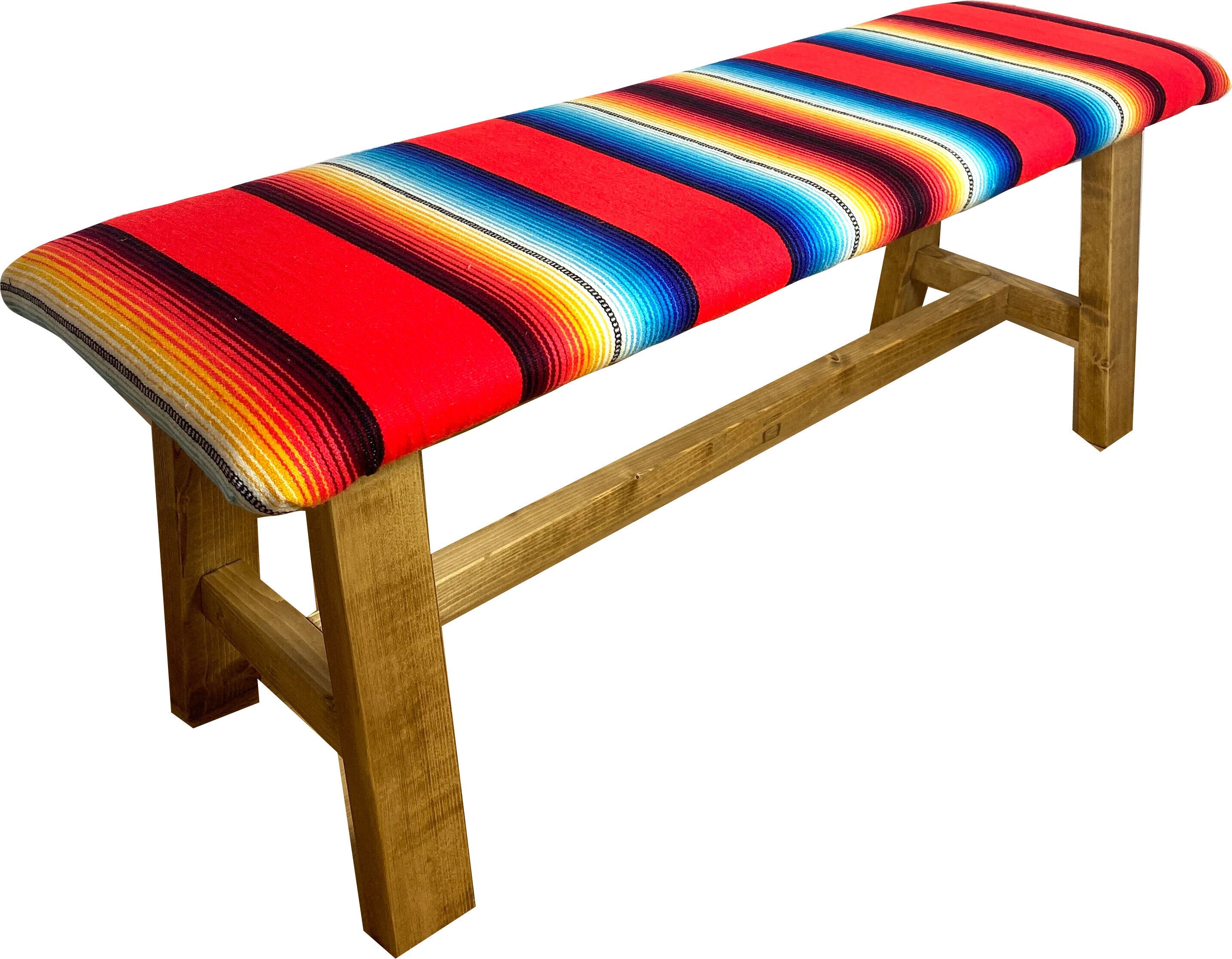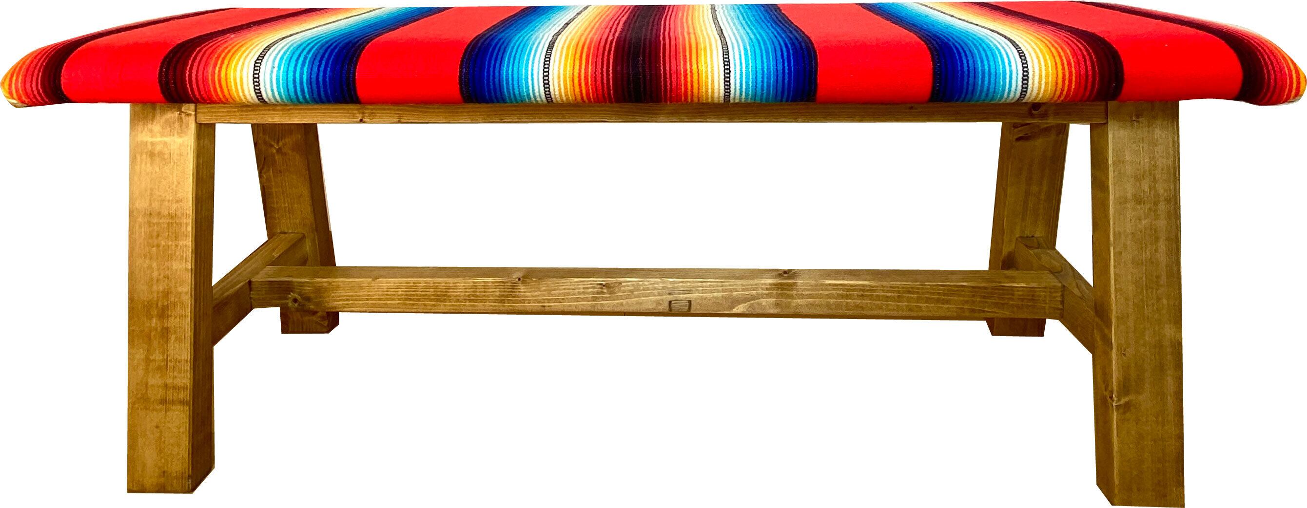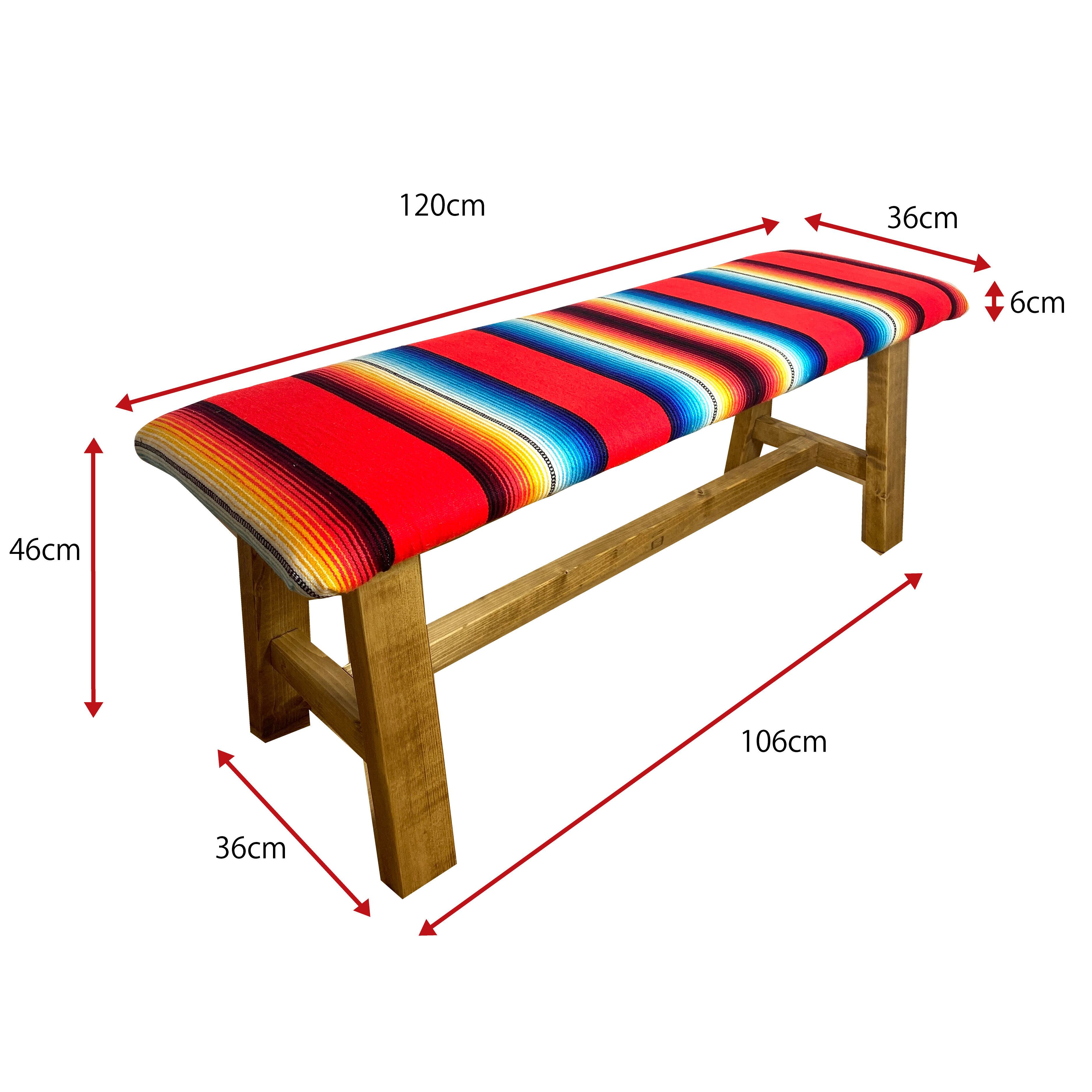 サラペの色鮮やかなボーダーを座面に仕立て生まれたumikaguの『サラぺ ベンチ』です。