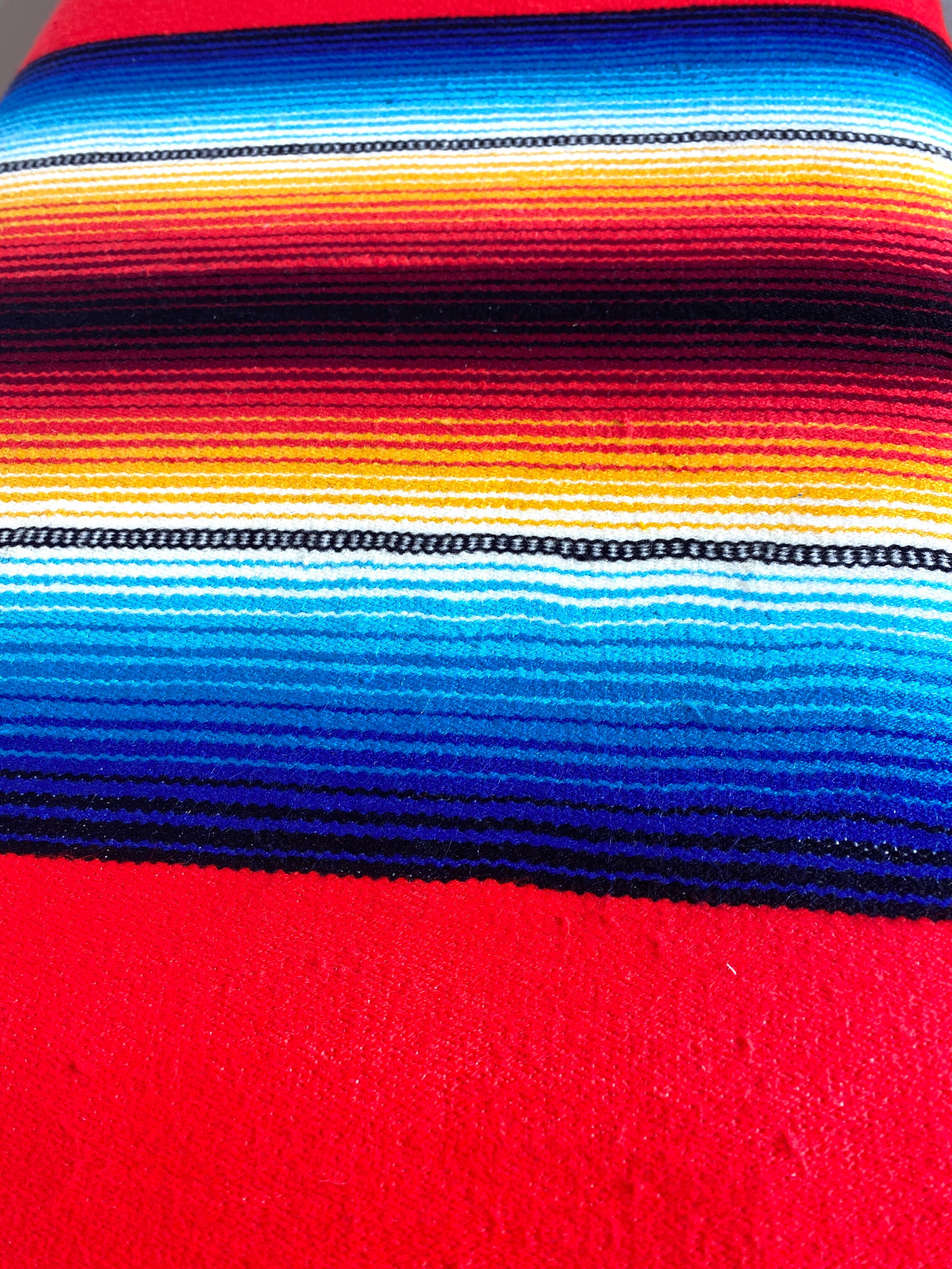 サラペは、メキシコの伝統的な色鮮やかな縞模様が特徴の毛織物、または肩掛けのポンチョや毛布です。丈夫で厚手の生地が主流で、ビーチカルチャーでも大判のラグをソファーカバーにしたり車のラゲッジスペースに敷いたりと西海岸インテリアでも外せないモチーフです。