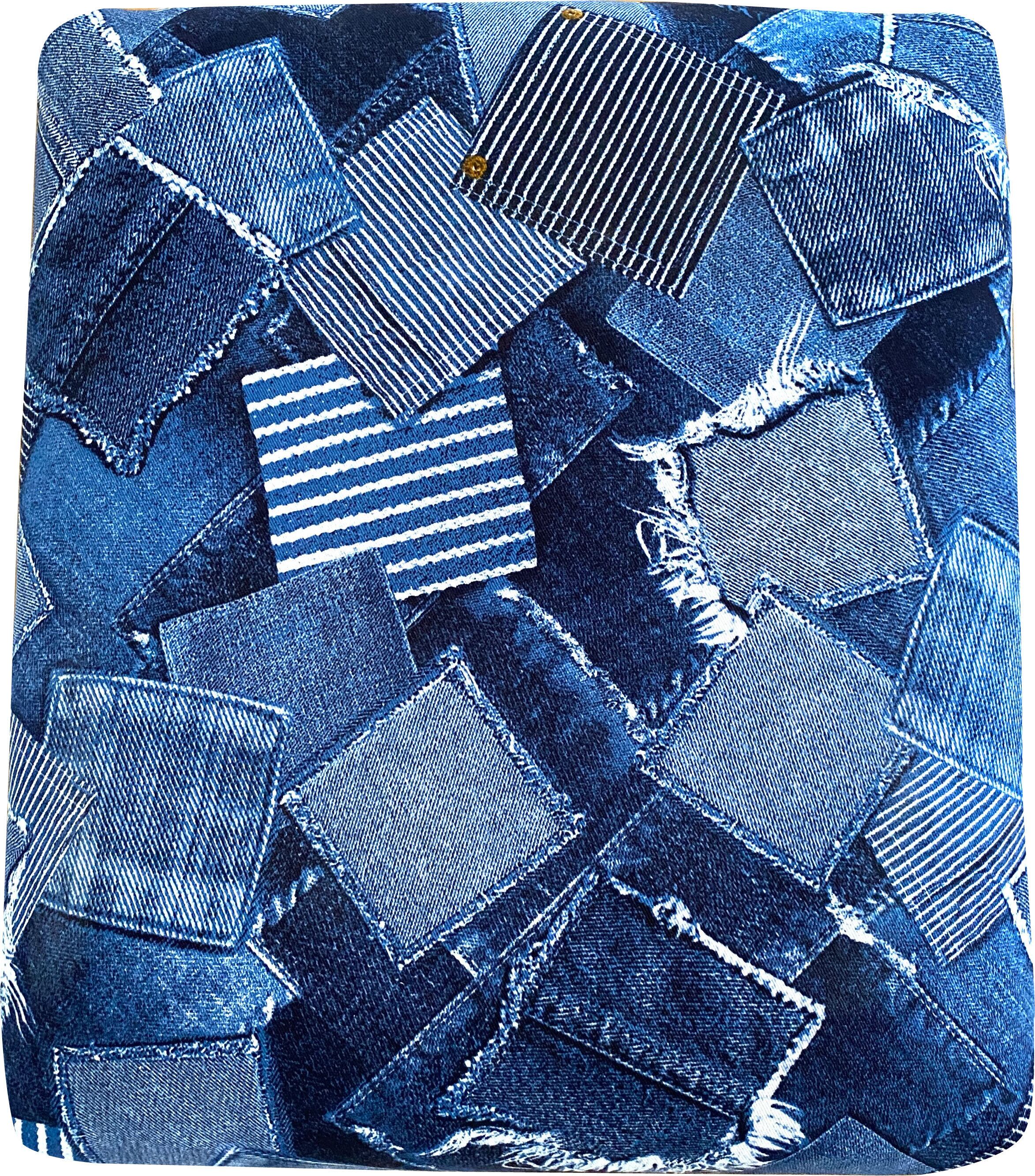 デニムパッチワーク風プリント スツール(ネイビー)