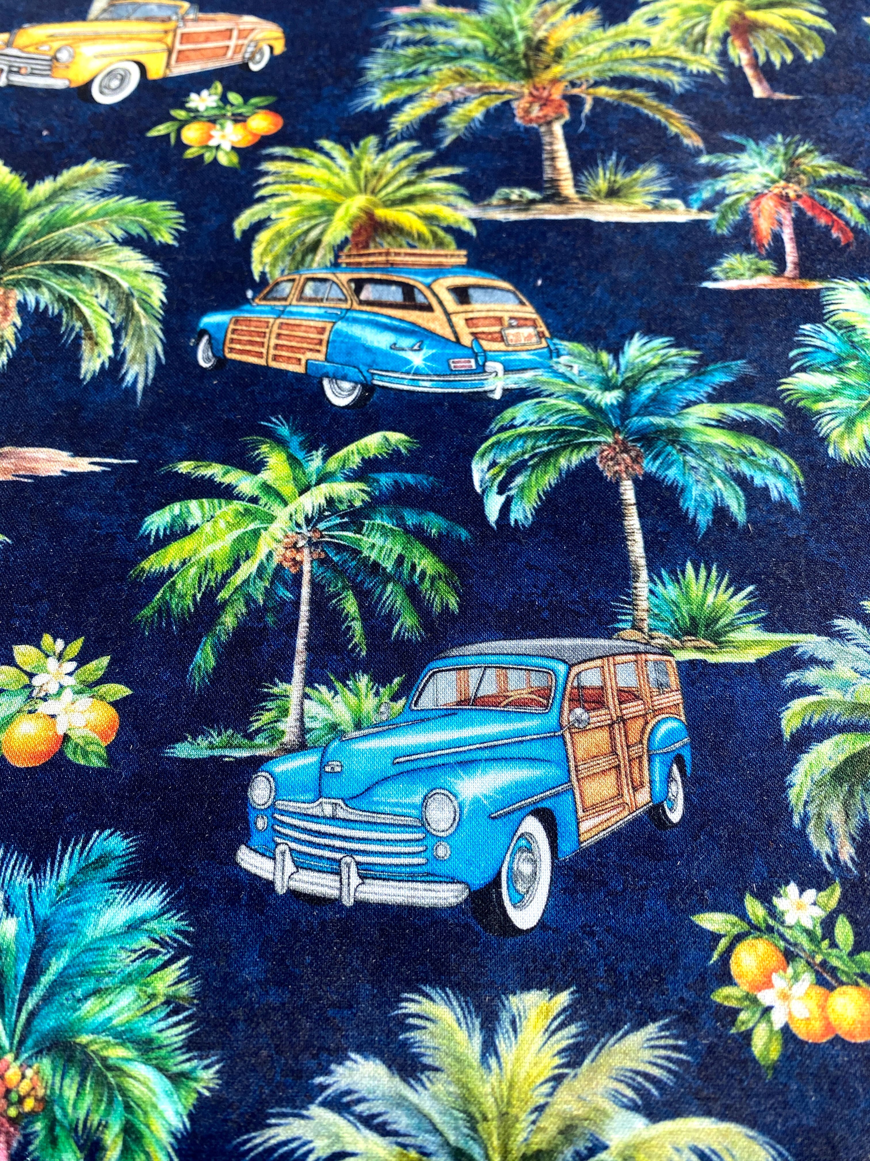 ヤシ&クラッシックカー柄 スツール